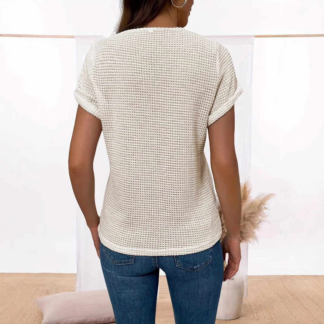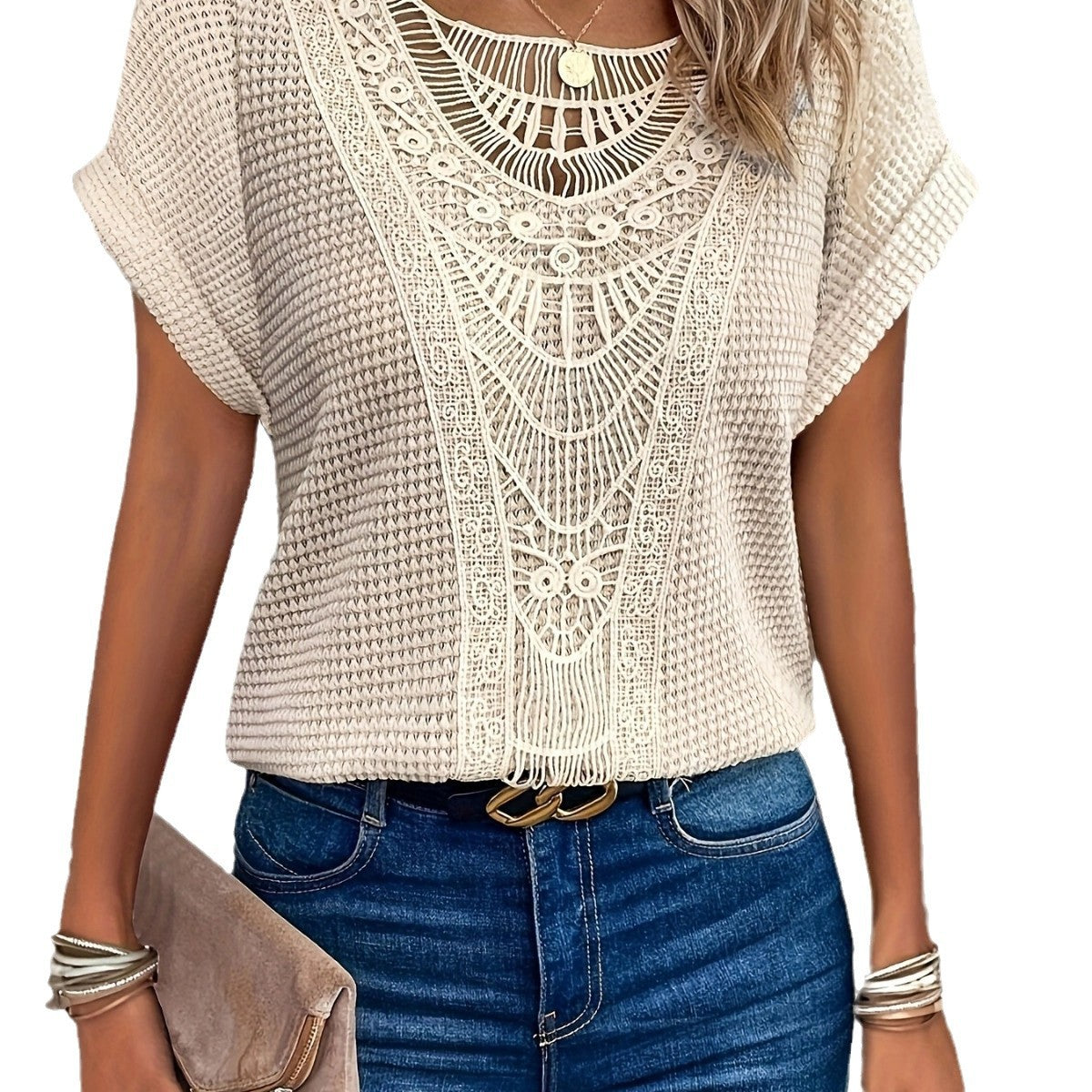2024 Popular Women's Short Sleeve Hollow Lace Stitching Shirt Trendy Fashion Top for All Seasons