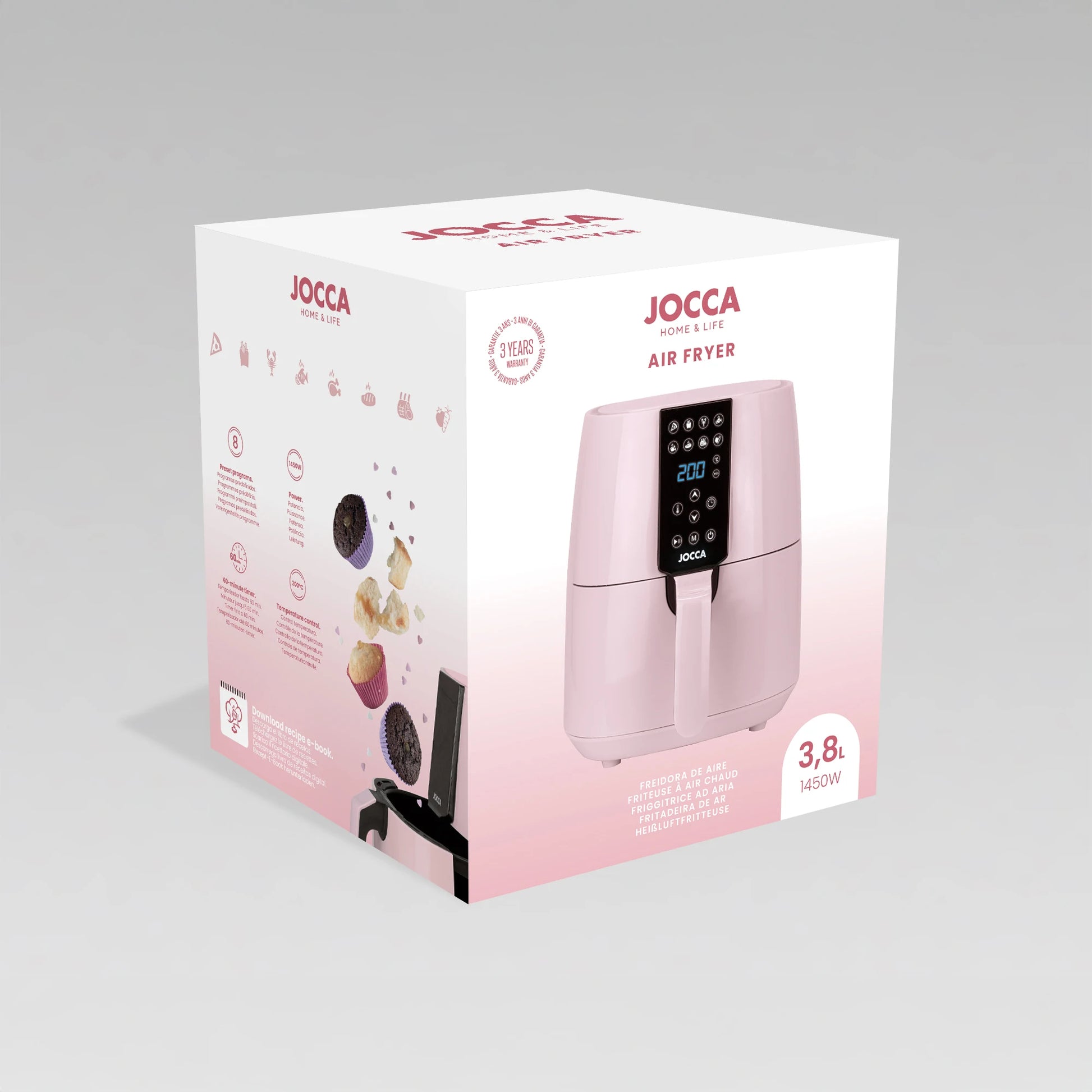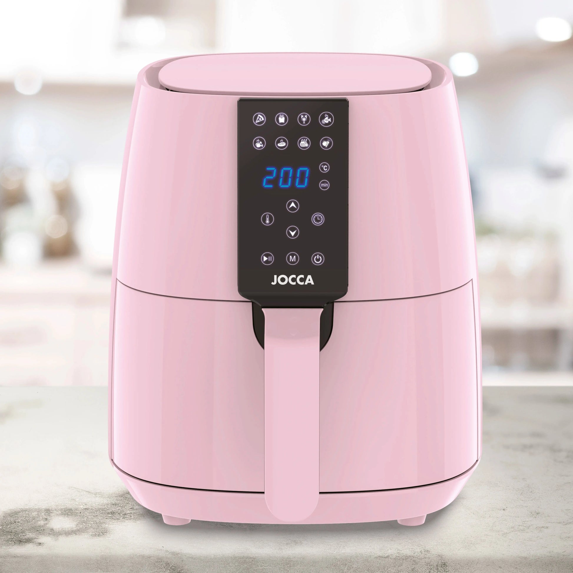 With theJocca pink 3.8L Digital Air Fryer, Healthy cooking has never been so easy and fast.Give a sweet and functional touch to your kitchen and enjoy irresistible dishes with less fat!