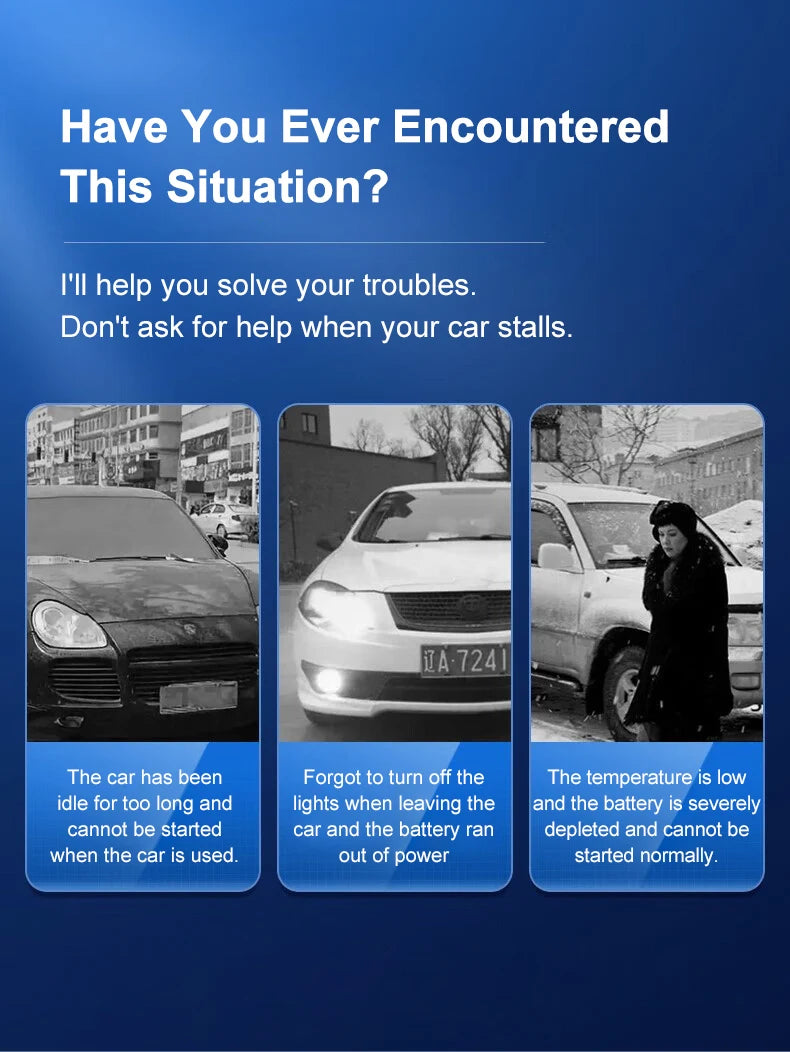 The product has just been received, you must first turn on the flashlight to discharge, and then charge the product for more than 4 hours, and then start the car, because the product is empty. This operation can prolong the service life of the product!